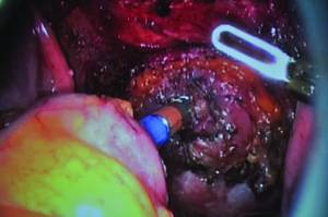 While the lateral and posterior dissection of the mesorectum can be easily done laparoscopically or robotically, we believe the anterior dissection of the rectum – removal of the endometriosis off the posterior aspect of the vagina while leaving it attached to the rectum – is more easily performed using a hand-assisted laparoscopic approach or even a hybrid open approach through the mini-Pfannenstiel incision.