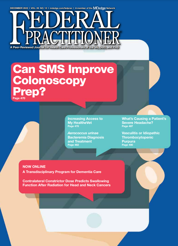Volume Number 39 Issue Number 12 Date Wednesday, December 14, 2022 - 12:00 Publication Federal Practitioner Cover image Cover image
