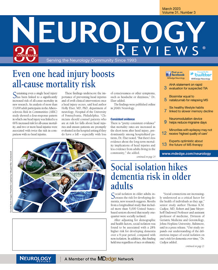 Volume Number 31 Issue Number 3 Date Wednesday, March 1, 2023 - 12:00 Publication Neurology Reviews Cover image Cover image